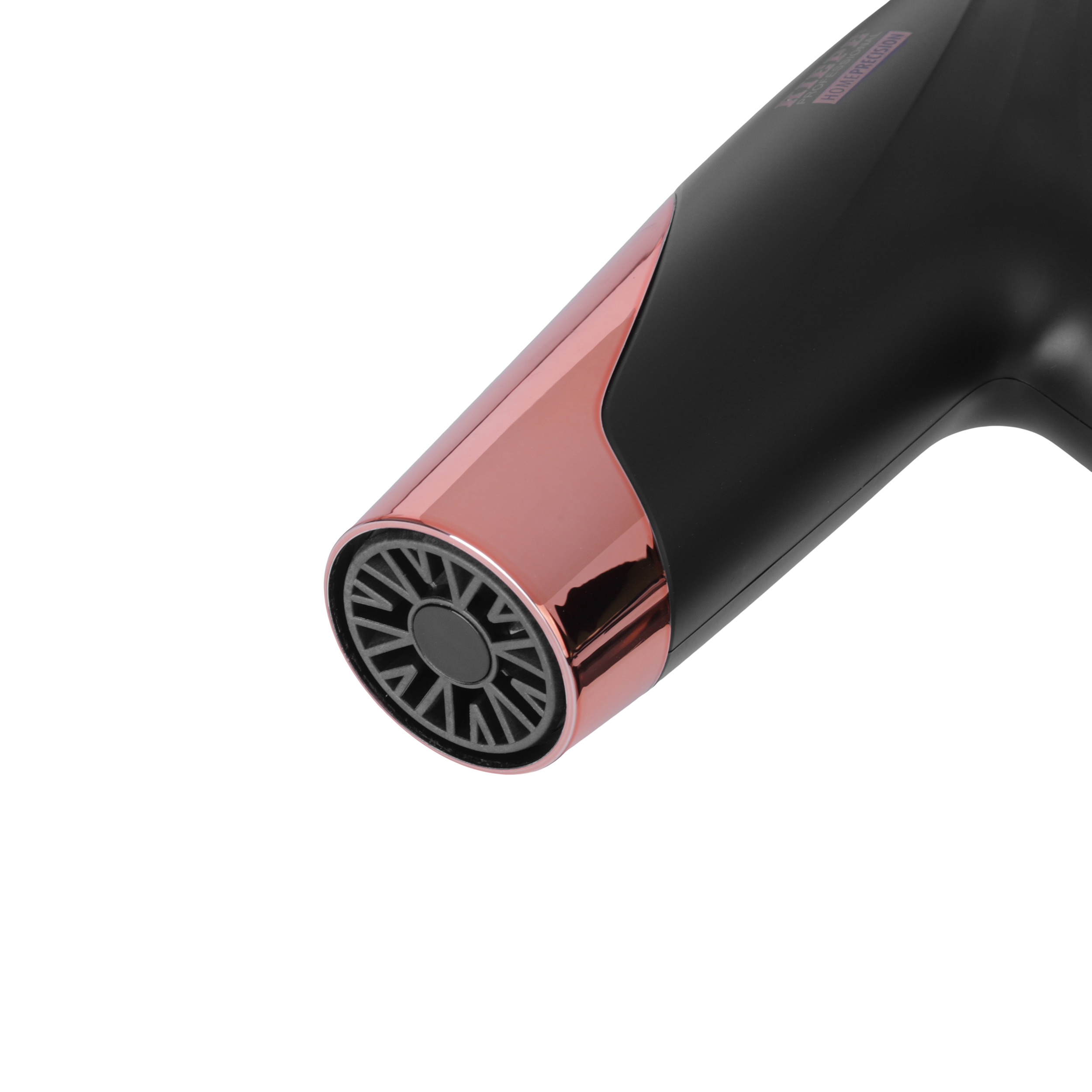 فیلتر این سشوار فلزی و قابل شستشو است و دارای یک دیفیوزر و یک عدد متمرکزکننده است.