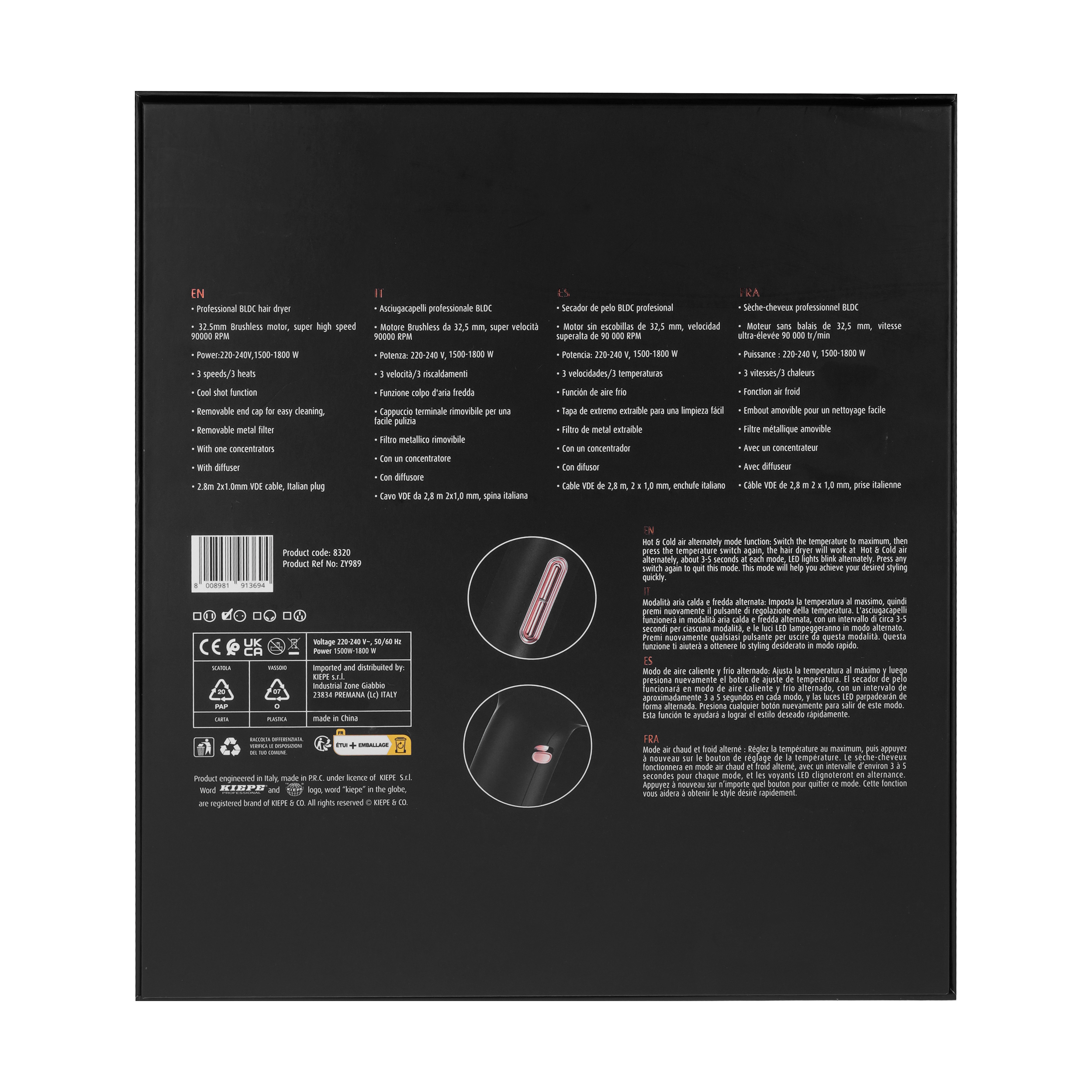 سشوار حرفه ای برند کیپه از لاین HOME PRECISION محصولی پیشرفته، حرفهای و فوقسبک با موتور دیجیتال براشلس (با دور موتور 90000 دور در دقیقه) است که با فناوری یونی طراحی شده و با توان 1500 تا 1800 وات، عملکردی فوقالعاده ارائه میدهد.طراحی ارگونومیک، مدرن و چشمنواز، استفاده از این دستگاه را بسیار راحت و کاربردی کرده است. فناوری یون ژنراتور این سشوار وز موها را کاهش داده و درخشندگی طبیعی را به انواع مو میبخشد.